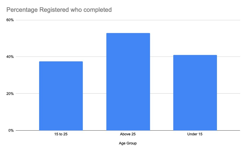 Of the members who registered, 40% of youth completed one reading of the Holy Qur'an